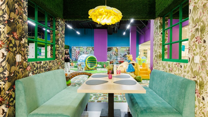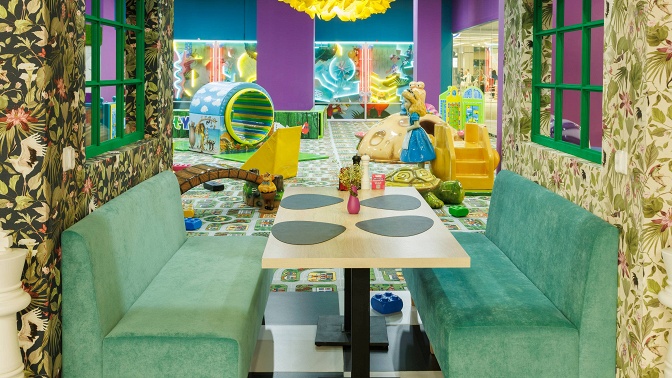 Пока дети бегают, прыгают и покоряют новые вершины под присмотром инструкторов, взрослые могут насладиться спокойным общением, интересными блюдами и напитками. В меню ресторана включены блюда интернациональной кухни, популярные в разных уголках мира. Для маленьких посетителей разработано игровое детское меню. Среди хитов — мини-пицца на цветном тесте, сырники с ягодным муссом и, конечно же, молочные коктейли. Все блюда готовятся из свежих и натуральных продуктов без консервантов и добавок.