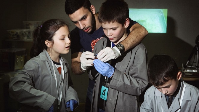 Дополнительное преимущество: бесплатная программа для родителей (пока дети путешествуют по лабораториям, взрослые могут поучаствовать в тематической научной викторине: 18 вопросов на эрудицию и логическое мышление, лекция-разбор правильных ответов, веселые байки о науке и не только, специальный подарок победителю, но главное — возможность обсудить с ребенком свой опыт, дополнив его впечатления от программы).